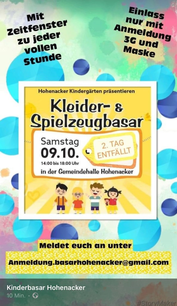 ACHTUNG: Die Basarzeiten wurden geändert!!! Der Basar findet jetzt nur am Samstag, 9.10.2021 statt!