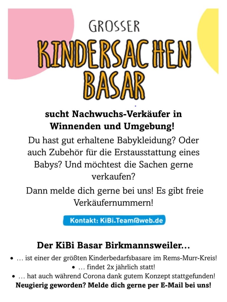 vom Kindersachenbasar in Birkmannsweiler gibt es Neuigkeiten.