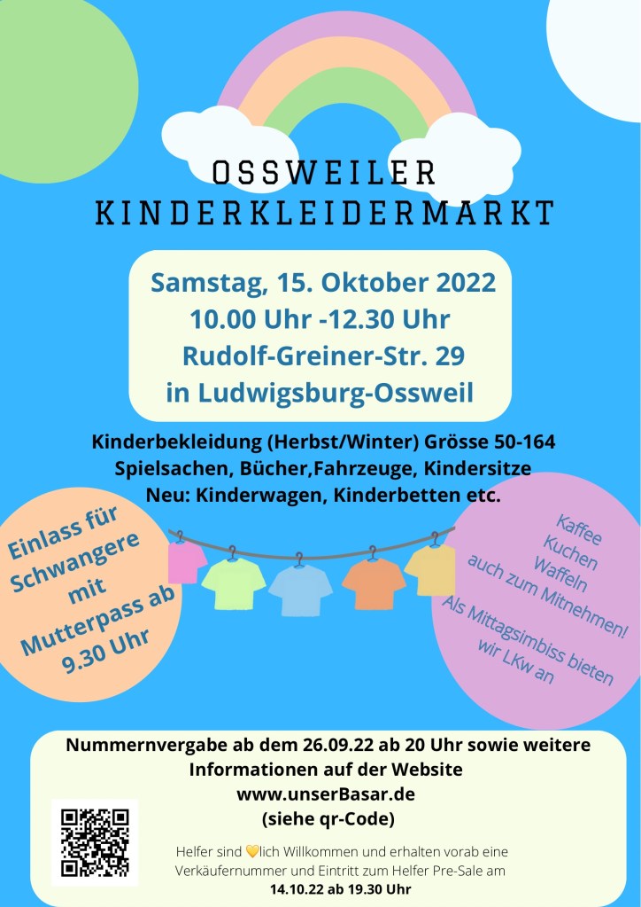 Am 15. Oktober 2022 findet von 10.00 Uhr bis 12.30 Uhr der nächste Ossweiler Kinderkleidermarkt statt.