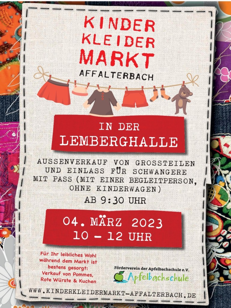 Weitere Infos findet Ihr auf dem Foto und unter https://www.kinderkleidermarkt-affalterbach.de.