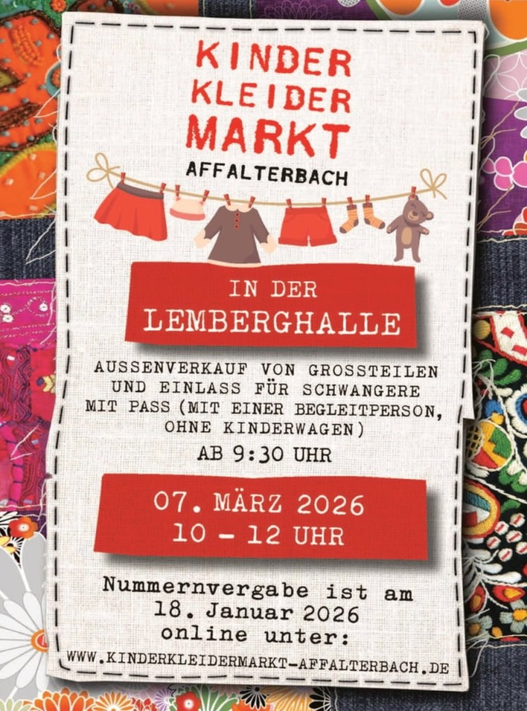Weitere Infos findet Ihr auf dem Foto und unter https://www.kinderkleidermarkt-affalterbach.de.
