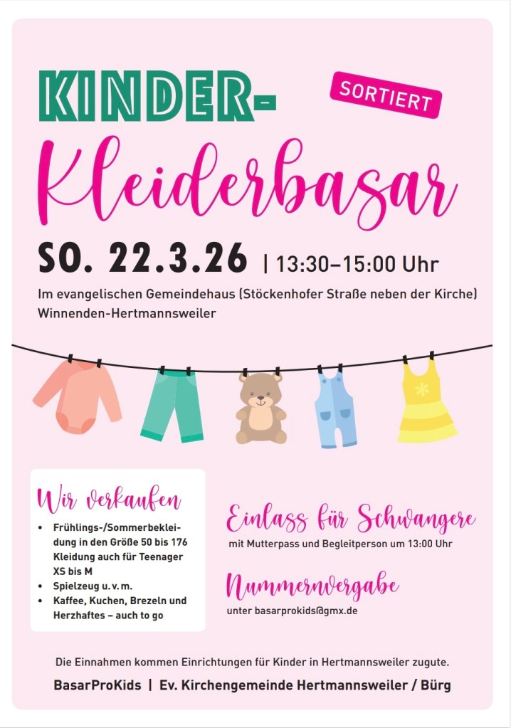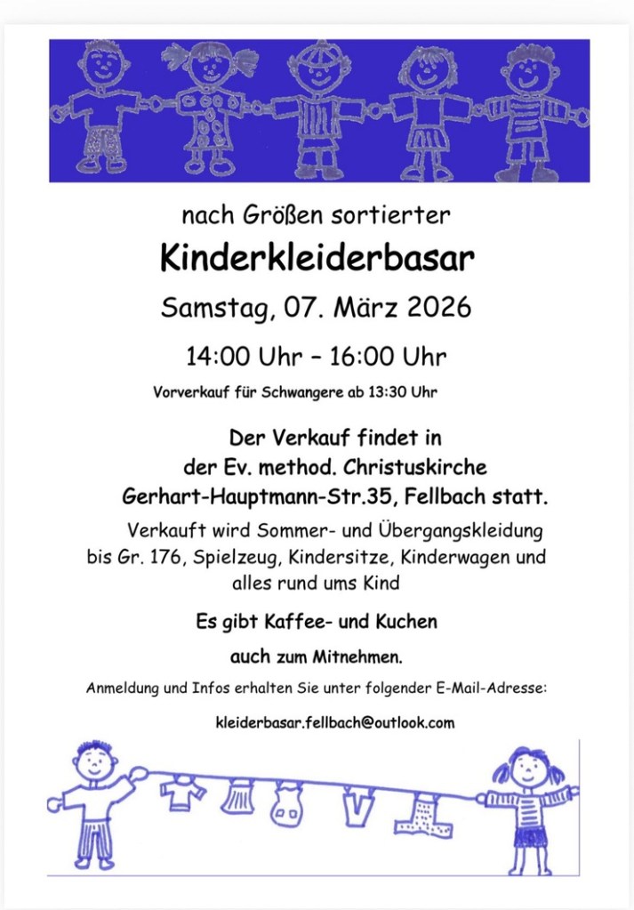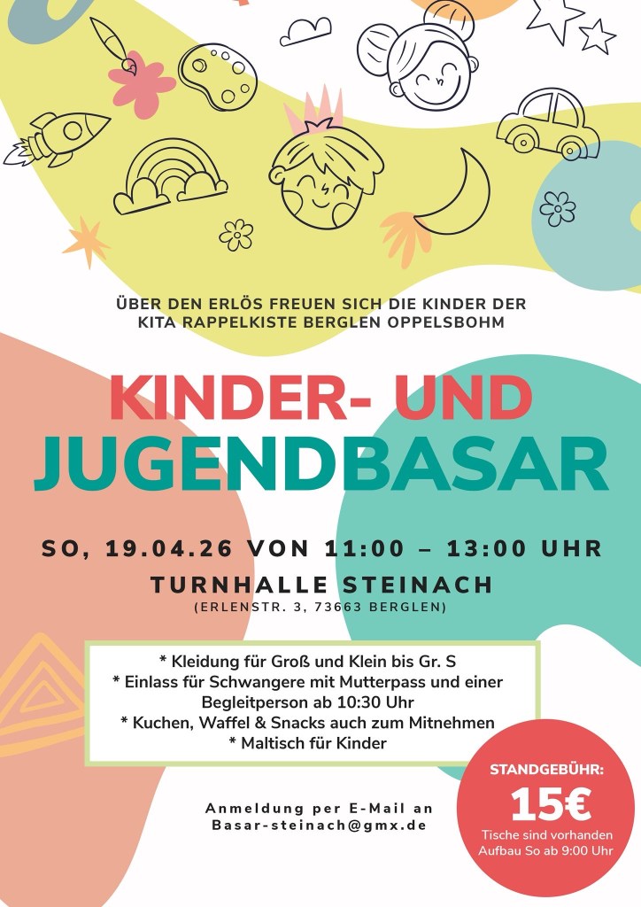 Am Freitag 27.02.2026 laden der Evangelische Kindergarten Villa Kunterbunt Leinzell und die Eltern herzlich zu einer Kinderbedarfsbörse am Abend ein! Ab 20 Uhr bis ca. 22 Uhr wird die Kulturhalle in Leinzell zu einen lebhaften Marktplatz für Baby- und Kinderbekleidung, Spielzeug und allem, was dazu gehört.