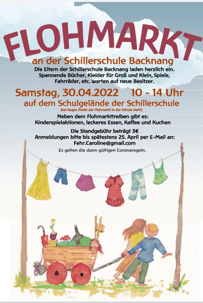Am Samstag, 22.03.2025 findet in der Fröbelschule in Fellbach-Schmiden ein Kinderflohmarkt statt. Dort gibt es Kleidung – Spielzeug – Kuchen – Getränke.