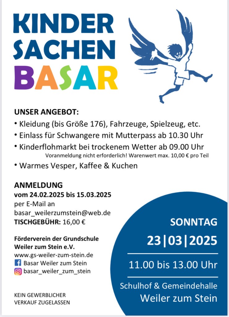Anmeldung ab 24.02.2025 per E-Mail an basar_weilerzumstein@web.de.