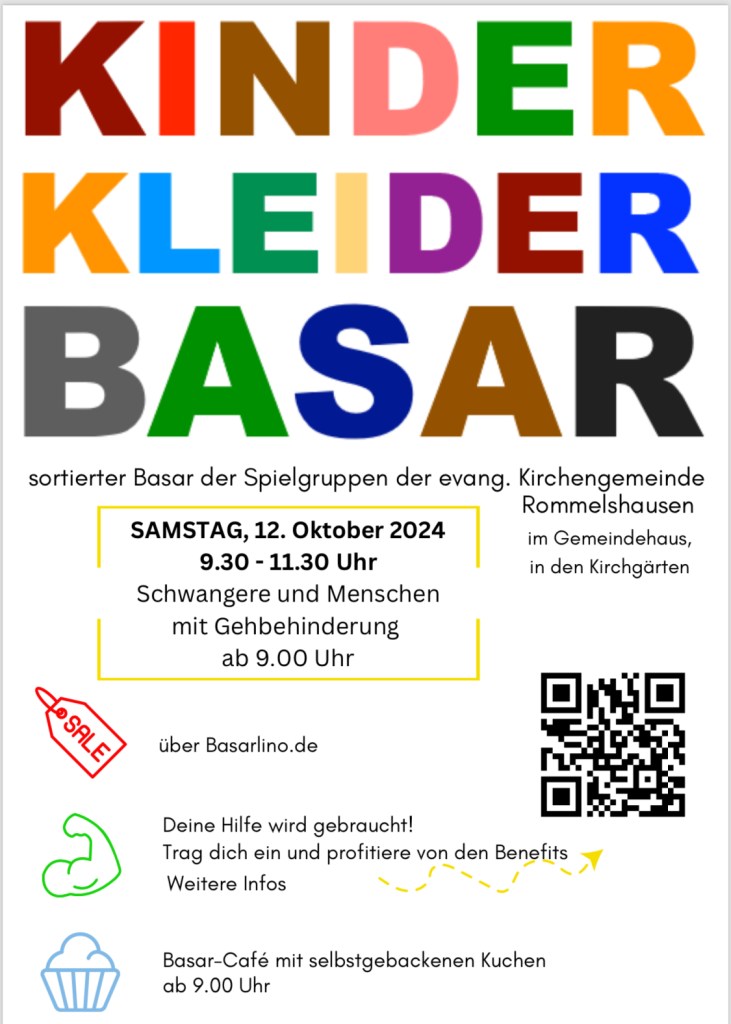 Am Samstag, 12.10.2024 findet wieder ein Kinderkleiderbasar in Rommelshauen statt.