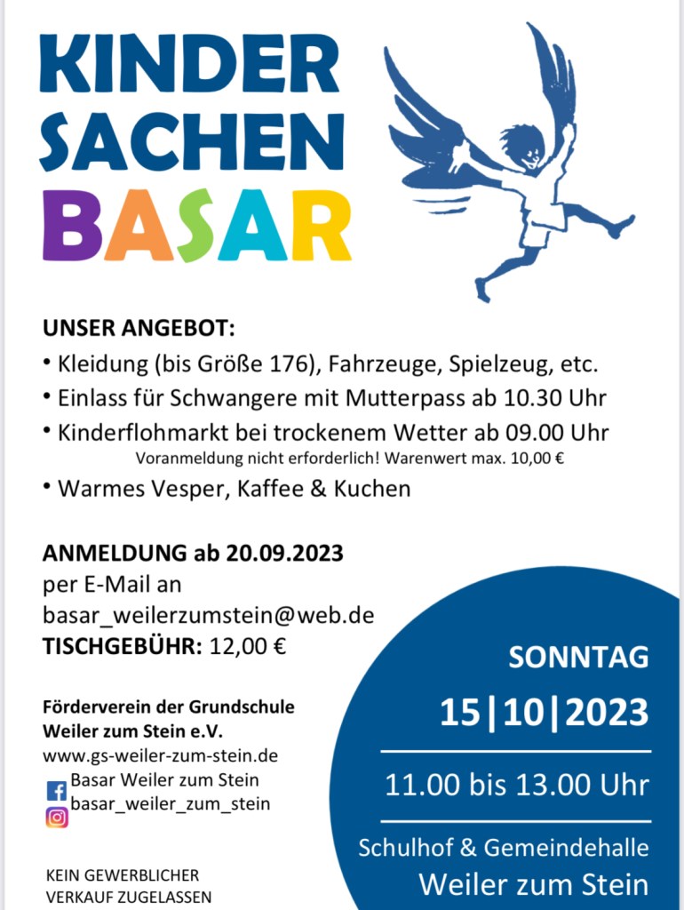 Am Vormittag findet ein Kindersachenmarkt, am Nachmittag ein Frauensachenmarkt statt.