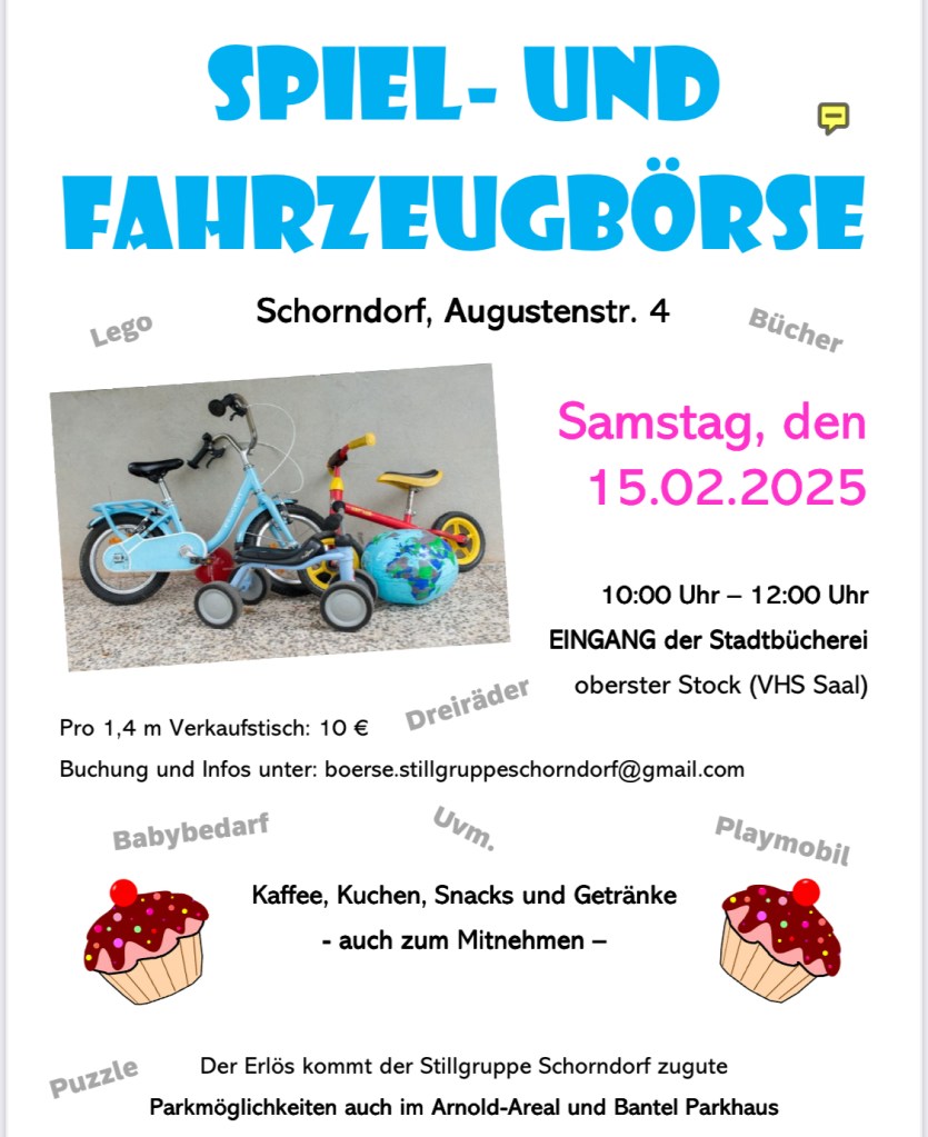 Es ist wieder soweit: Am Samstag, 07.03.2026 findet von 10.00 Uhr bis 12.00 Uhr in Schorndorf-Weiler die nächste sortierte Kinderbedarfsbörse statt.