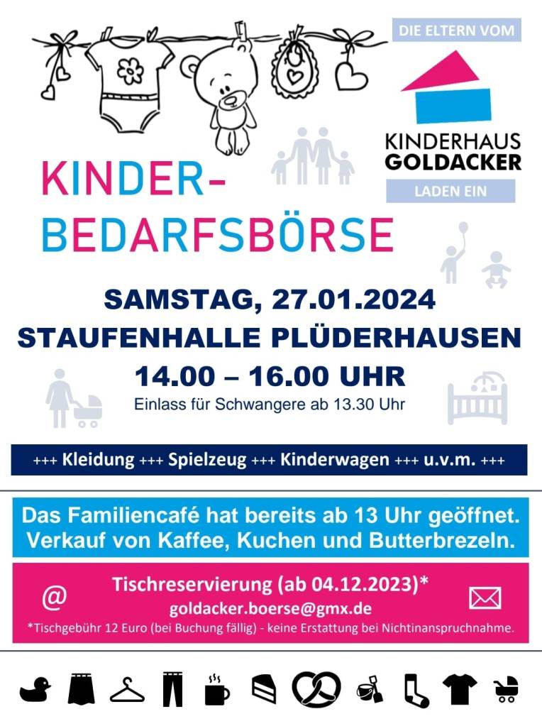 Am Samstag, 27.01.2024 findet eine Kinderbedarfsbörse in Plüderhausen statt.